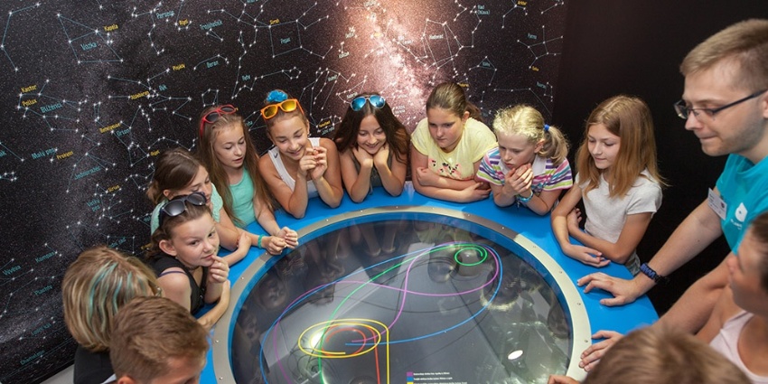 To the stars: Exhibition displays a variety of views spanning from his early childhood to the creation of the universe, including galaxies and other structures formovan in time and space. V mlné komoe uvidte stopy prolétávajcch mikrosvta, vyzkoute si pohyb tles in gravitational fields, and dotknete se látky hvzd. You may express your fantasies by creating virtual graffiti that depicts strange planets with mimozines on a project wall.