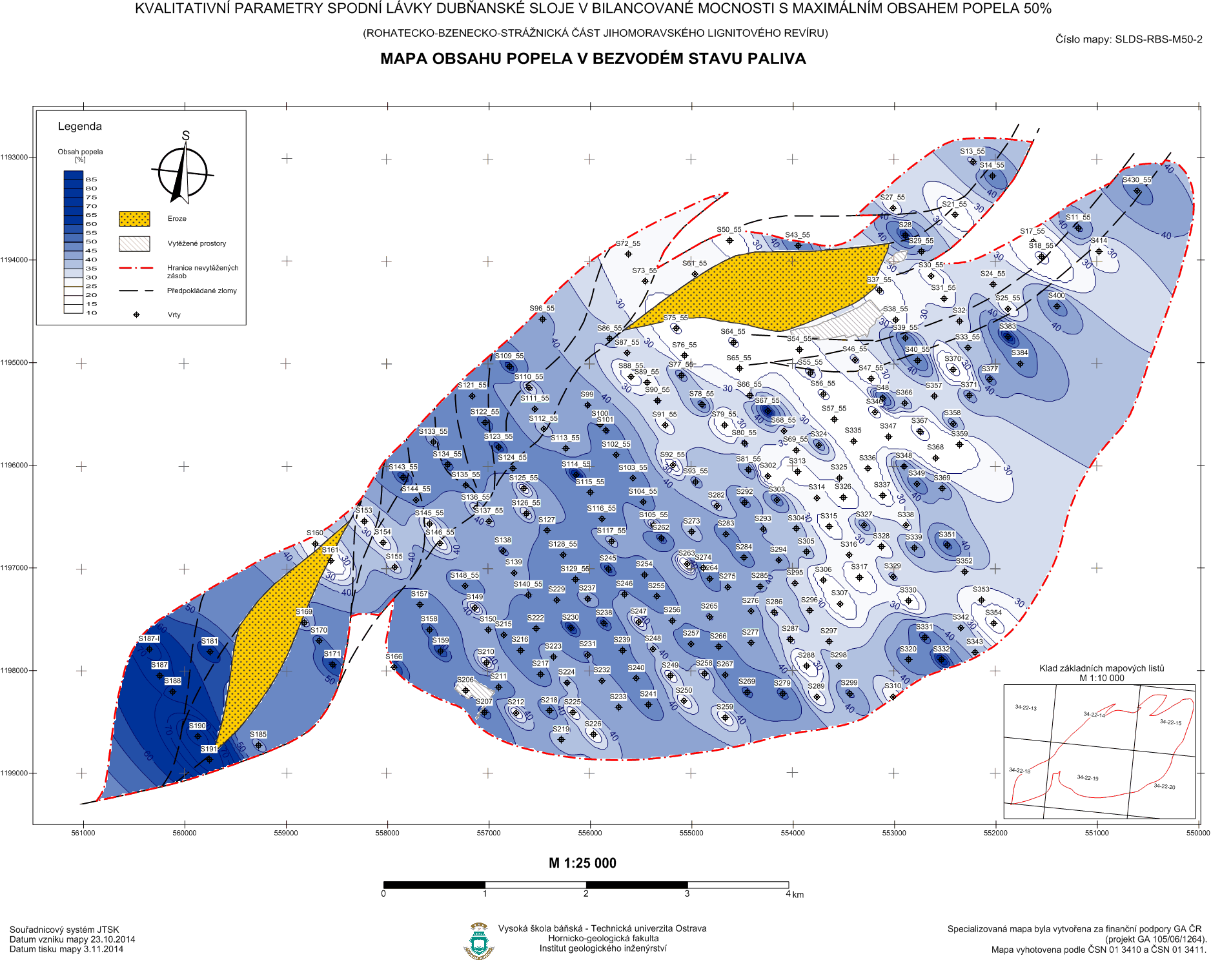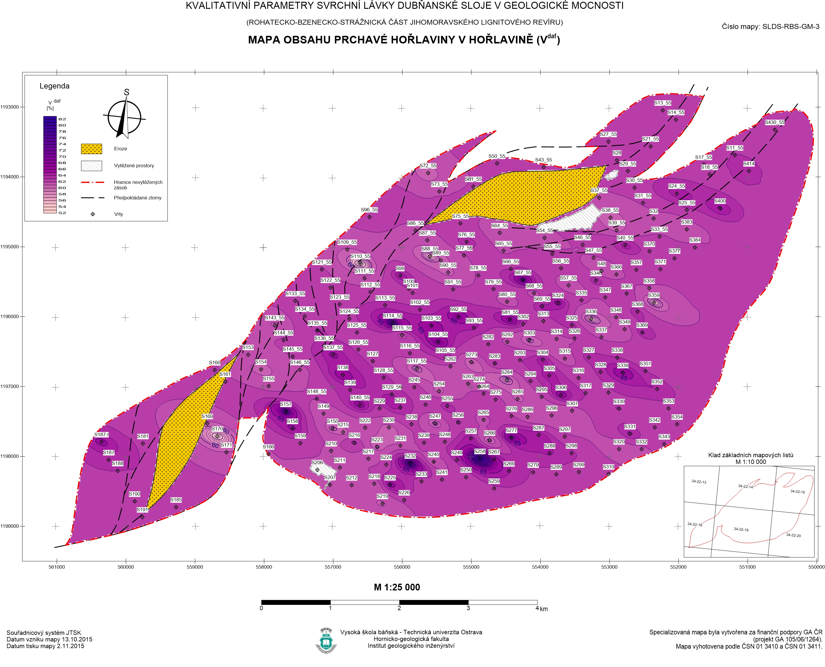 | Svazek specializovaných map s odborným obsahem KVALITATIVNÍ PARAMETRY SPODNÍ LÁVKY DUBŇANSKÉ SLOJE V BILANCOVANÉ MOCNOSTI S MAXIMÁLNÍM OBSAHEM POPELA Ad = 50% (rohatecko – bzenecko - strážnická část jihomoravského lignitového revíru) - text, osvědčení, potvrzeni, mapa1, mapa2, mapa3 | doc. RNDr. František Staněk, Ph.D. doc. Ing. Jan Jelínek, Ph.D. Mgr. Rastislav Kubala Ing. Kateřina Karasová Ing. Juraj Kisztner RNDr. Jana Staňková, Ph.D. |