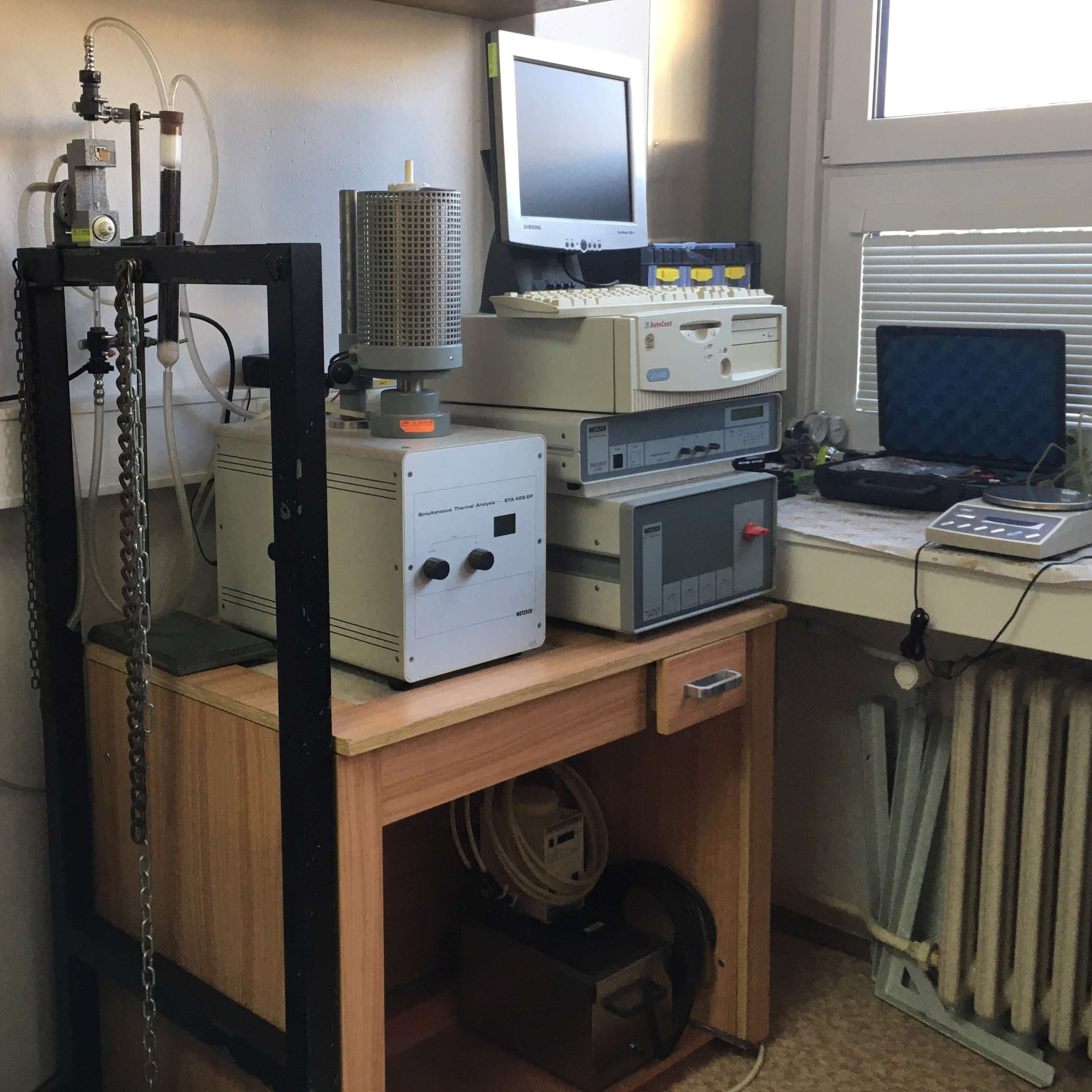 V laboratoři je možné provádět kvalitativní a kvantitativní analýzu vzorků na základě tepelné degradace materiálu pomocí metody diferenční termické analýzy (DTA). Tato metoda umožňuje sledovat jak fyzikální jevy (krystalografické přeměny, tání, adsorpce apod.), tak jevy chemické (dehydratace, dehydroxylace, rozklad, oxidačně-redukční procesy atd.), analýzu anorganických materiálů, jako např. zeolitů, bentonitů, hydrotalcitů, strusek, popílků, koksů, uhlí, biomasy, nanomateriálů atd. V rámci výuky může být využito pro měření v rámci řešení závěrečných prací.