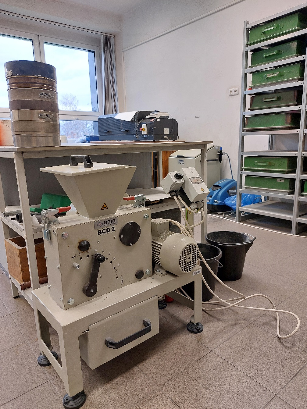 Laboratoř JB 145 slouží jednak pro přípravu vzorků (drcení a mletí), určení zrnitostního složení surovin, přípravu analytických vzorků a stanovení indexu melitelnosti uhlí Hardgrove, dále k výuce předmětů zabývající se přípravnými procesy napříč obory HGF. Možnost virtuální prohlídky na https://ptvision.cz/vsb_aktualni_v2/#40185722p&239.67h&78.93t Větší Zdrobňovací zařízení jsou součástí Laboratoří HARD L9.