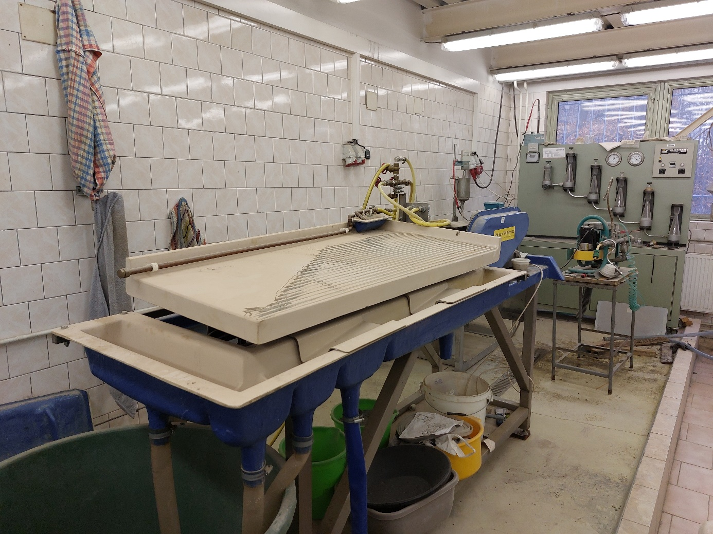V zadní části laboratoře (JA205B) jsou vystaveny modely dobývacích metod. (Slouží pro výuku hornických předmětů).