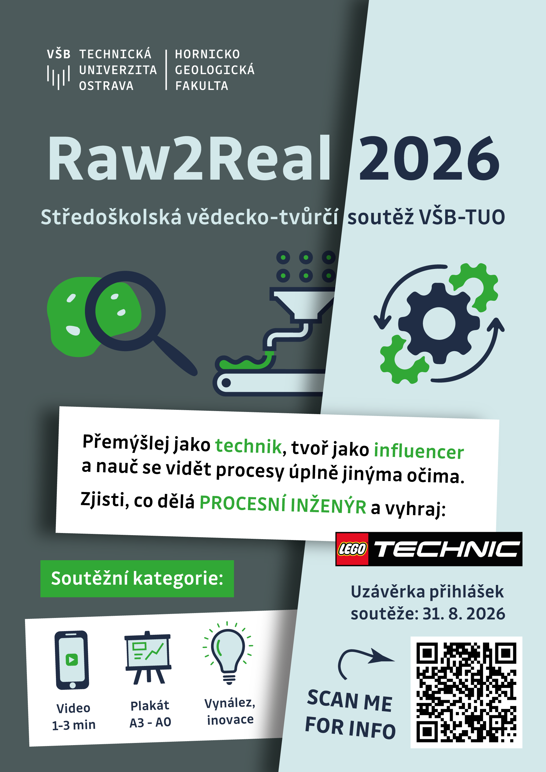 Raw2Real je celostátní soutěž pro studenty středních škol, která propojuje technické myšlení, kreativitu a moderní formy komunikace.