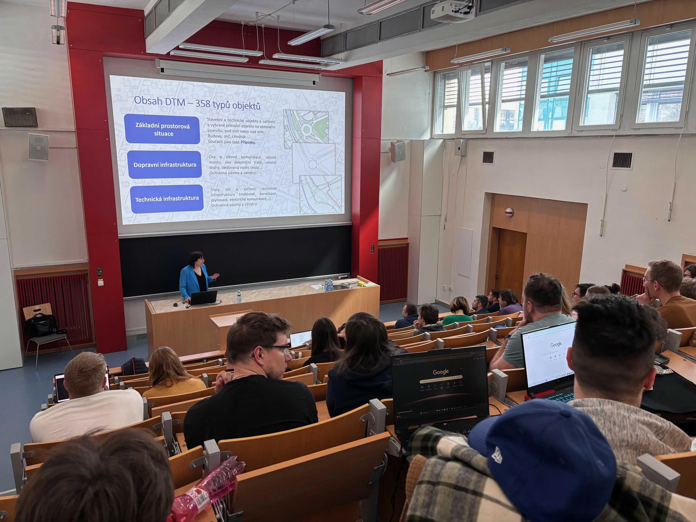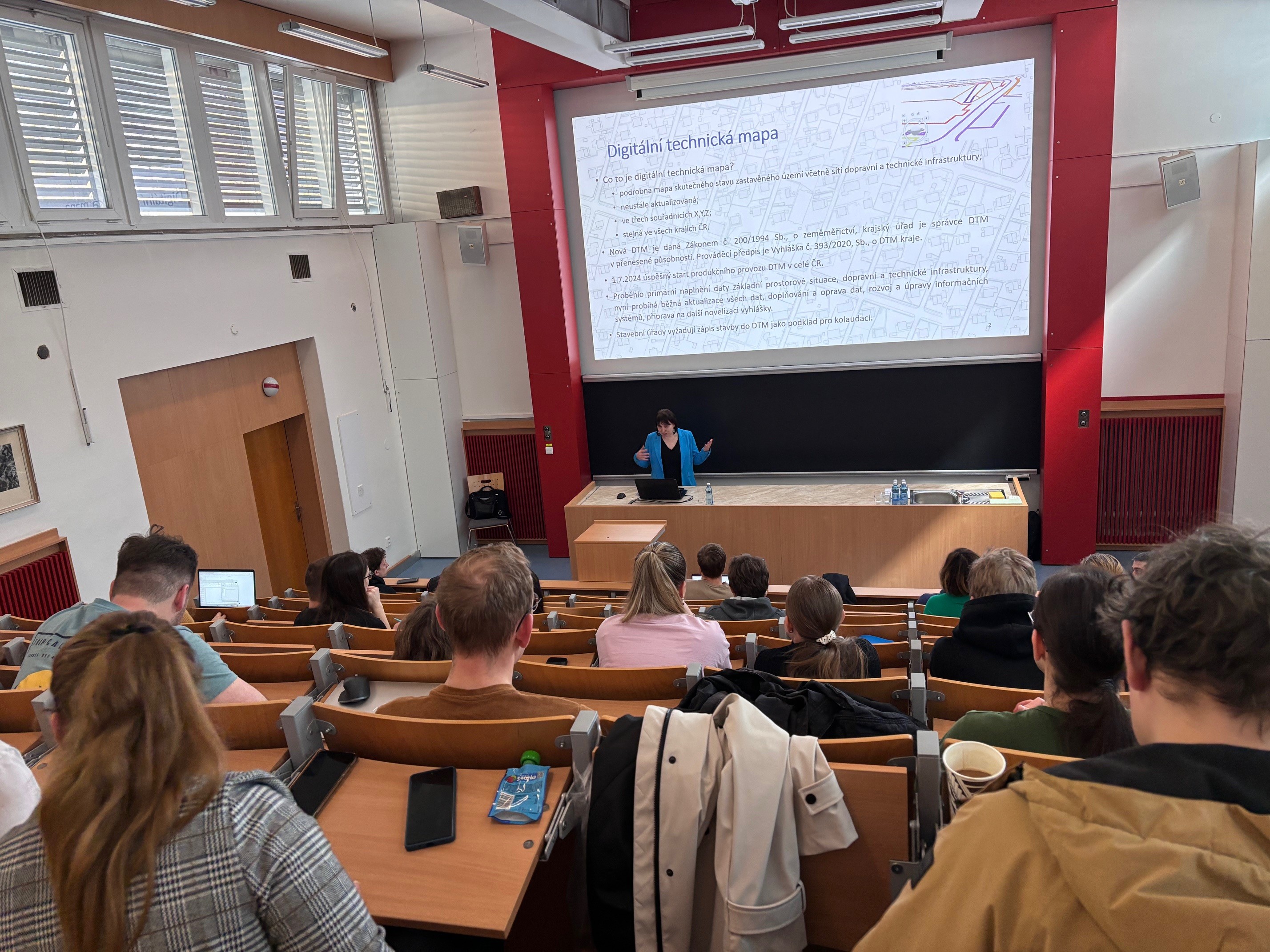 Velmi přínosná byla rovněž účast zástupce České komory zeměměřičů, Ing. Roberta Šinknera, MBA, který studenty seznámil s činností komory a aktuálními tématy, včetně digitální technické mapy.